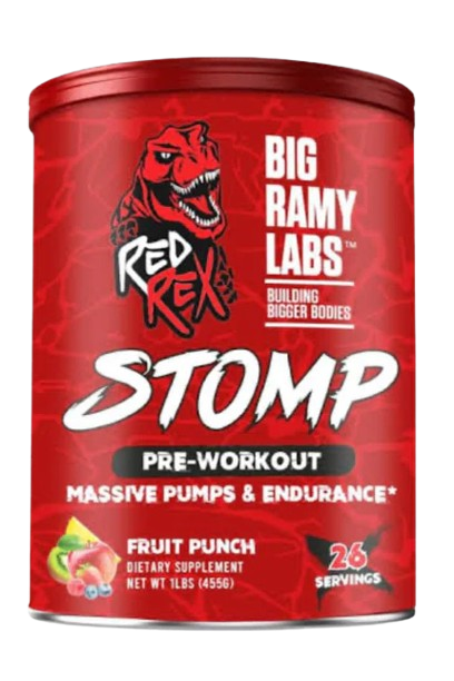 BIG RAMY LABS STOMP is a pre-workout supplement designed to deliver massive pumps and enhance endurance. This dietary supplement comes in a Fruit Punch flavor, providing 26 servings per container (Net Wt 1 lbs (455g)). It's formulated by Big Ramy Labs, focusing on "BUILDING BIGGER BODIES."