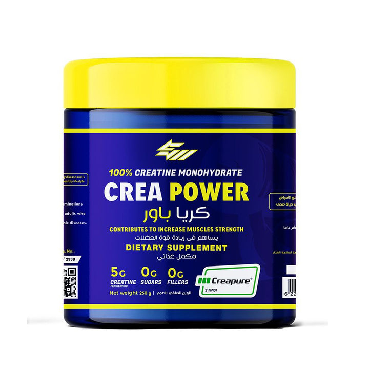 Crea Power Creatine (250g) is a premium 100% Creatine Monohydrate supplement, specifically formulated to increase muscle strength. This dietary supplement is made with Creapure®, indicating a high-purity, quality-assured creatine source.